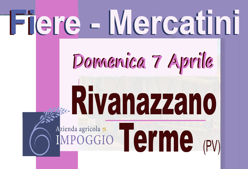 Rivanazzano Terme piazza Cornaggia 18, Rivanazzano Terme, italiaDomenica 7 aprile ci troverete col nostro banchetto a Rivanazzano Terme La Proloco di Rivanazzano Terme in Oltrepò Pavese organizza per festeggiare insieme la 20° edizione della Fiera d'Aprile 2024 Degustazioni con prodotti tipici; cortili storici; vecchi merletti; animali nelle corti bancarelle lungo le vie del paese; trattori, auto d'epoca e tanto altro !!! ____________________________________________________ […]
