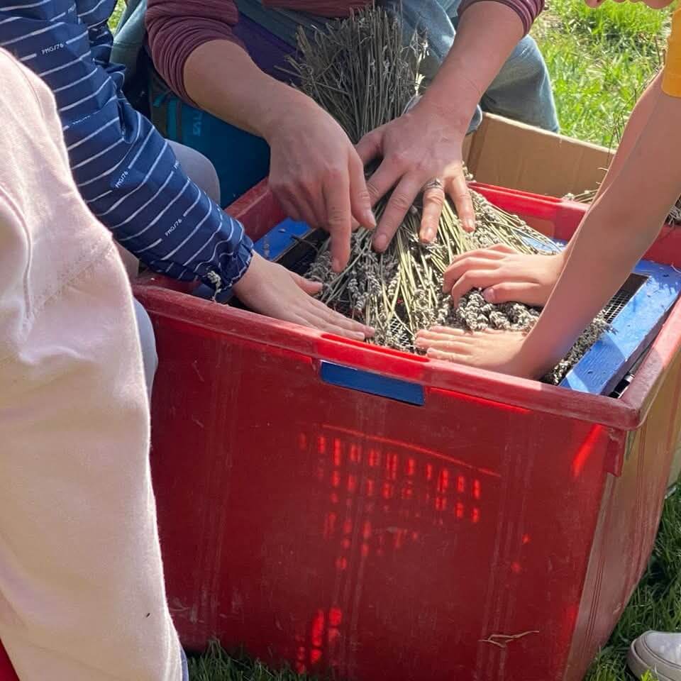 Dopo il percorso verrà proposto il laboratorio pratico di sgranatura delle cime fiorite essiccate: i bambini si stupiranno scoprendo il profumo intenso che rimane sulle mani dopo aver lavorato i fiori.